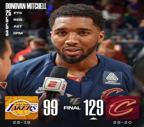 东契奇29分 湖人三节崩盘惨负骑士