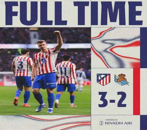 北京时间3月8日凌晨1点30分,马德里竞技主场迎战皇家社会。上半场比赛,希门尼斯头球摆渡,索尔洛特闪击破门帮助马竞取得领先,仅仅过去4分钟,索莱尔推射扳平比分。易边再战,格列兹曼和冈萨雷斯精彩配合,前者脚后跟助攻后者破门,但奥亚萨瓦尔世界波再次火速扳平比分,冈萨雷斯头槌破门上演梅开二度。最终,马德里竞技3比2险胜皇家社会,迎联赛三连胜。