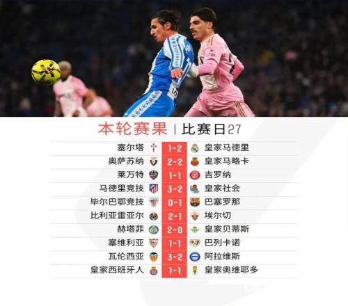 西甲第27轮综述:亚马尔制胜巴萨领跑,皇马止连败仍距榜首4分