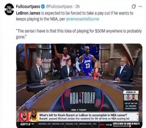 根据拉莫娜·谢尔伯恩报道,詹姆斯未来很可能会选择降薪,放弃5000万年薪,只为球队能够安全续约里夫斯,补强角色阵容。